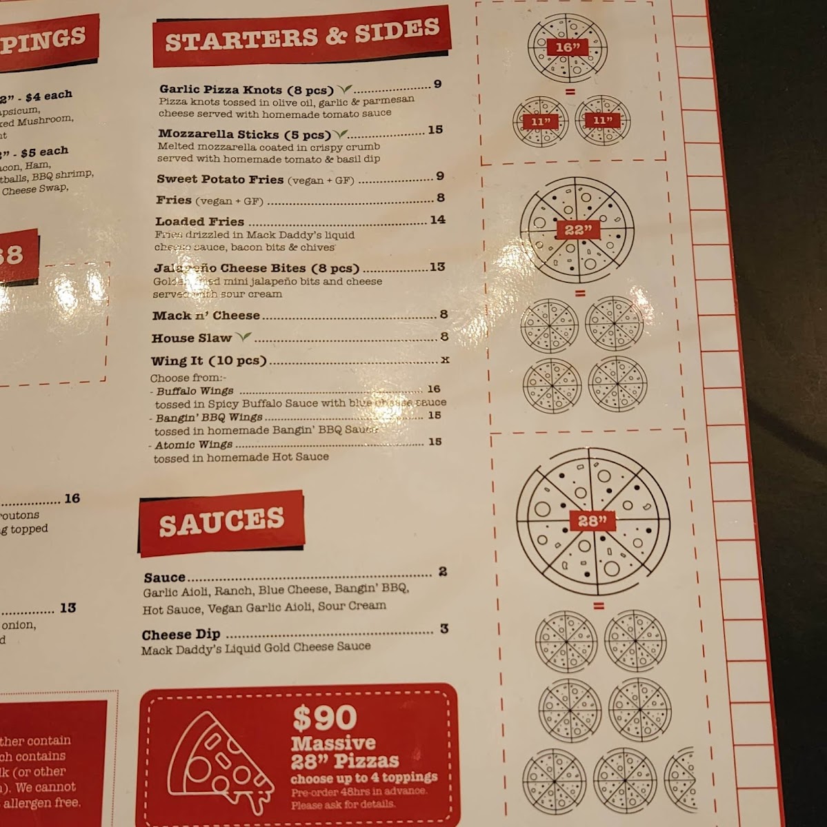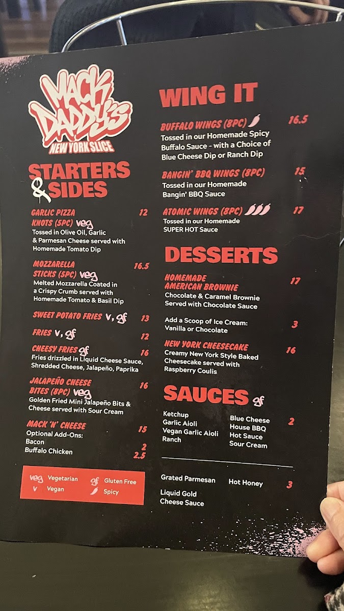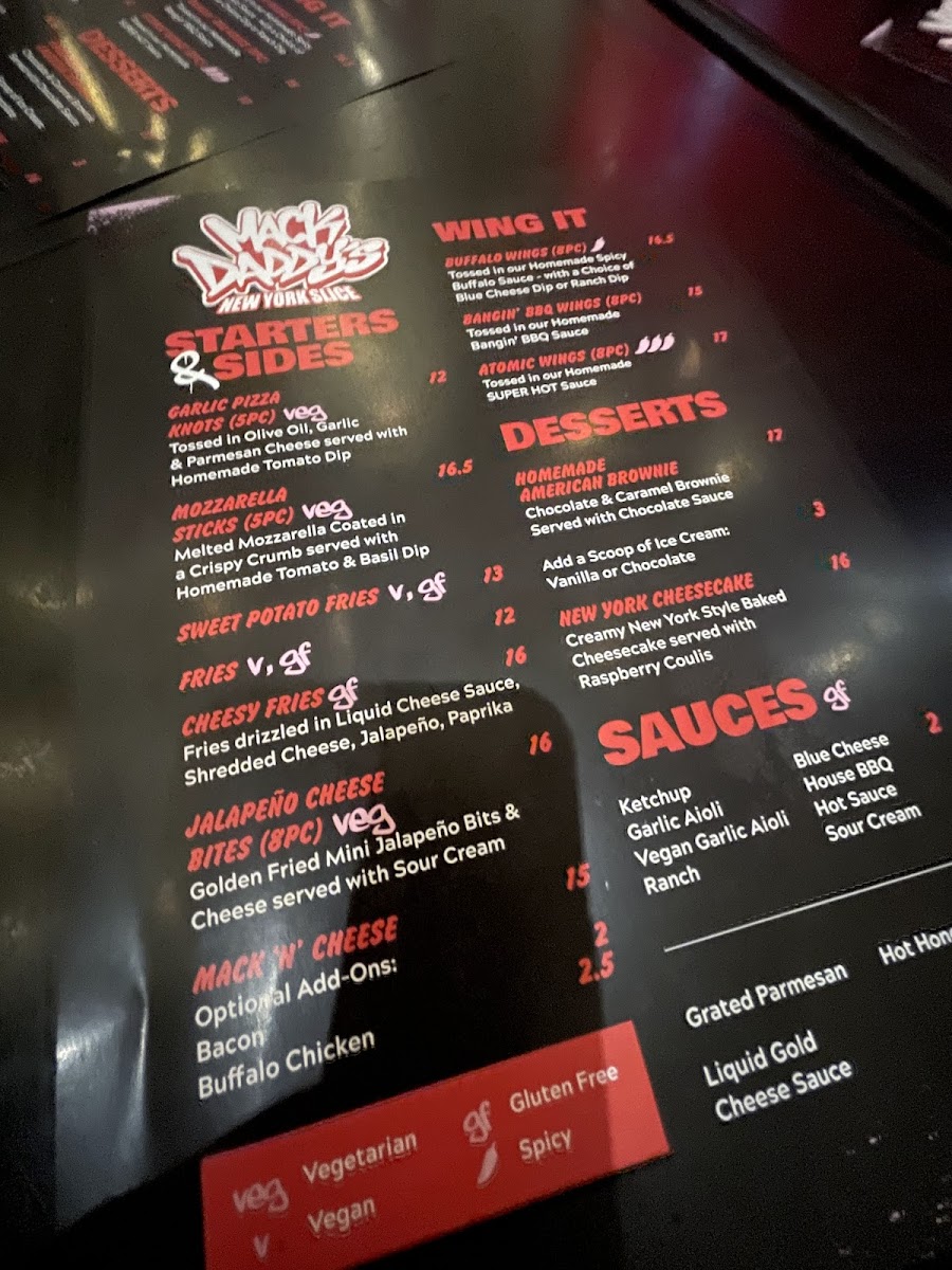 Mack Daddy's Menu